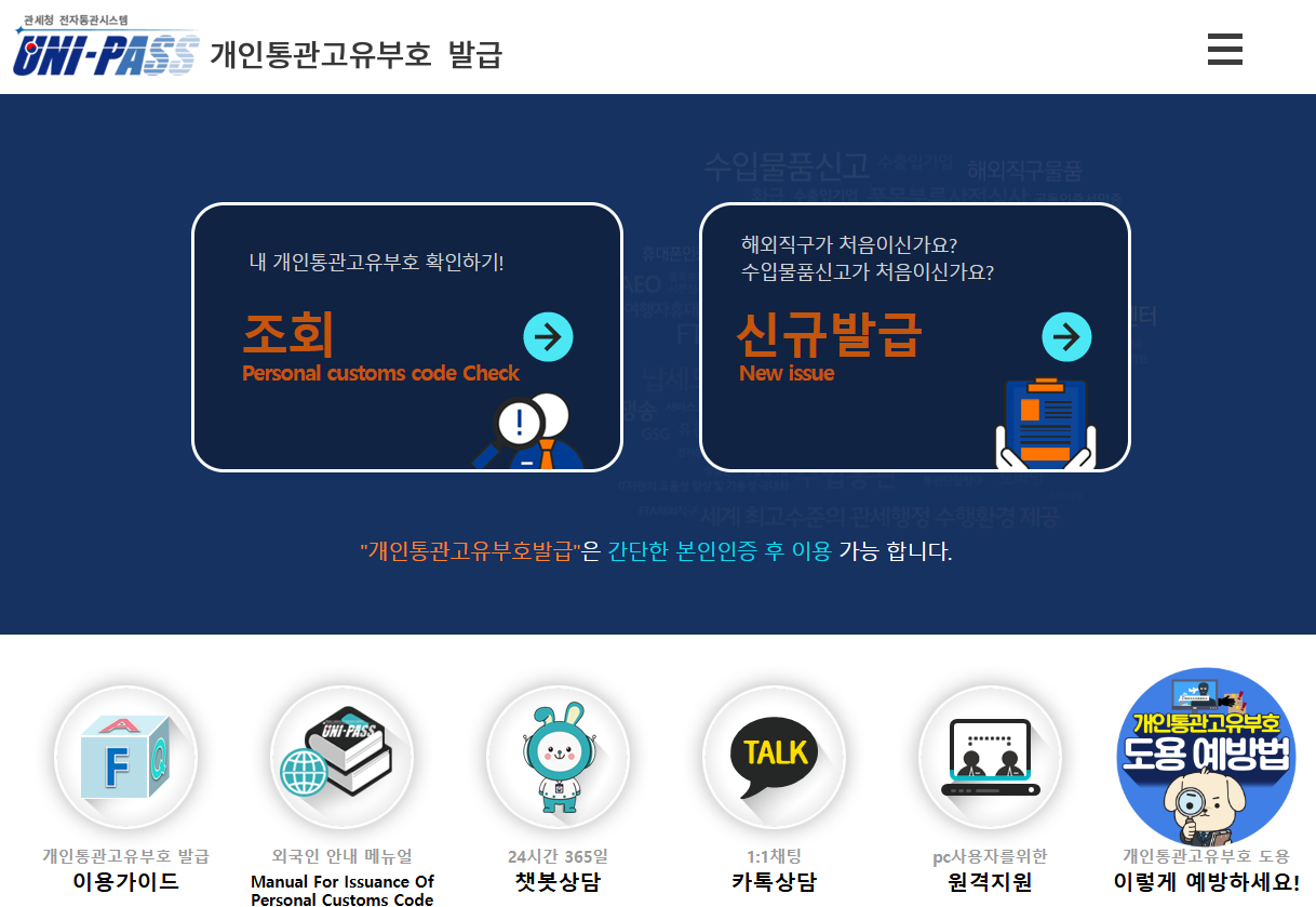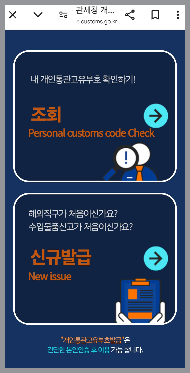 • 관세청 개인통관고유부호 발급 사이트 접속 👉 관세청 개인통관고유부호 사이트