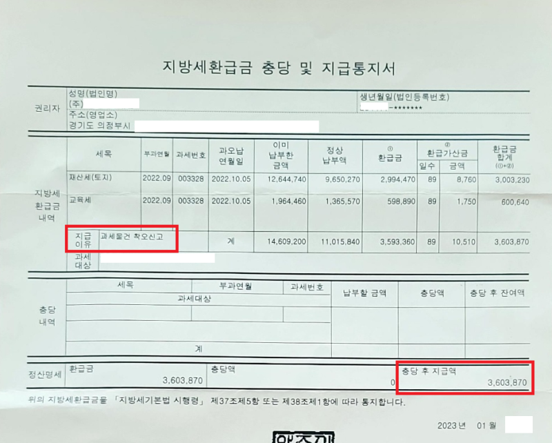 ➡️ 재산세 환급 처리 세무서에서 환급 신청서를 검토 환급 처리하며 은행 계좌 환급이 적합
