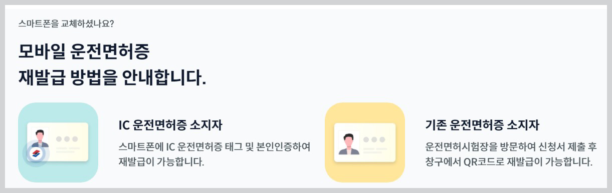 모바일 운전면허증을 분실하거나 새 기기로 변경해야 하는 경우, 다음 절차를 따라야 합니다.