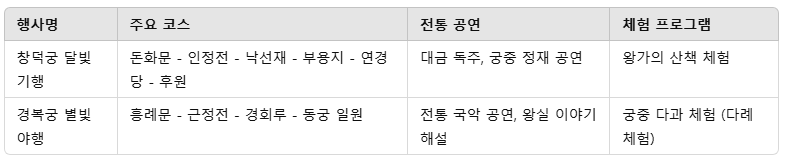서울에서 특별한 야경과 역사 탐방을 즐기고 싶다면, 창덕궁 달빛기행과 경복궁 별빛야행 중 자신의 취향에 맞는 행사를 선택해보세요!