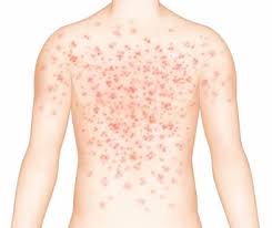 • 얼굴부터 시작해 몸 전체로 퍼지는 붉은 발진