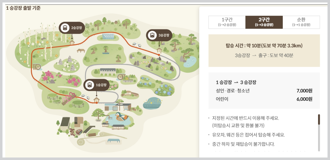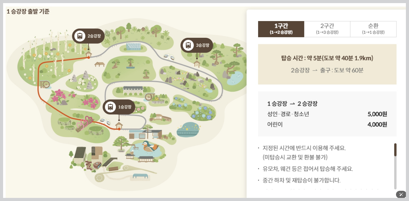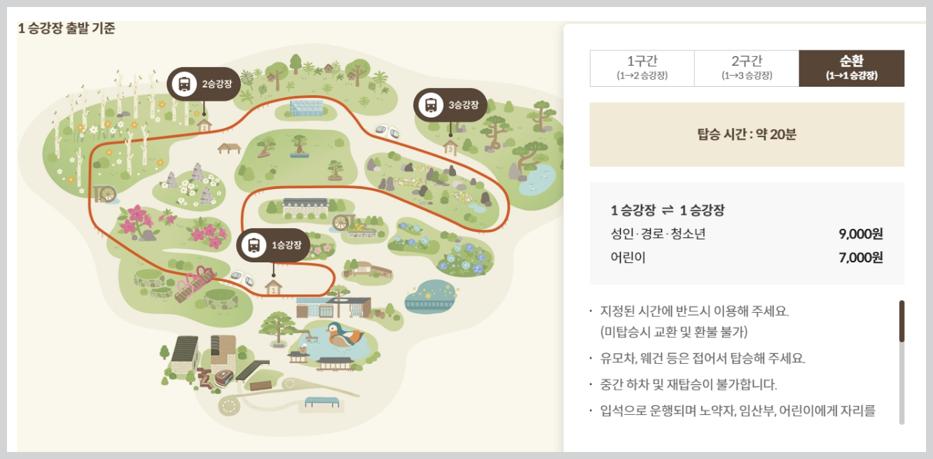 - 운행 시간: 오전 9시 30분 ~ 오후 5시 30분
