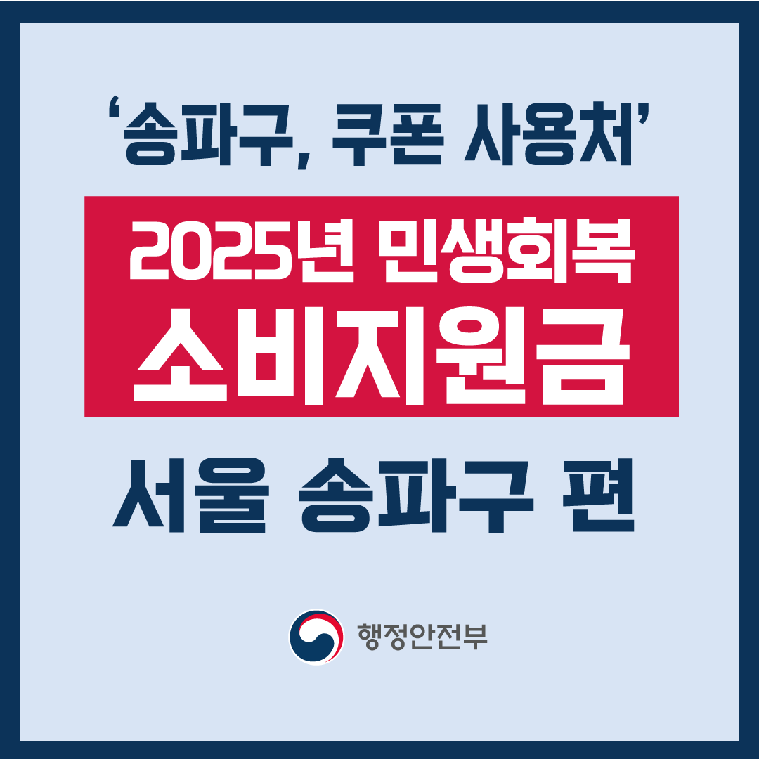 - 신청처: 서울시 소비지원금 안내페이지(https://mediahub.seoul.go.kr/archives/2014349) 또는 송파구청 홈페이지(https://www.songpa.go.kr)